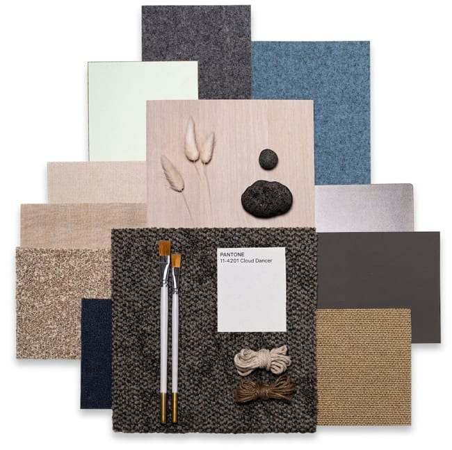 Im zweiten Szenario steht die Wirkung über Materialität im Fokus. Cloud Dancer bildet eine ruhige Bühne für: